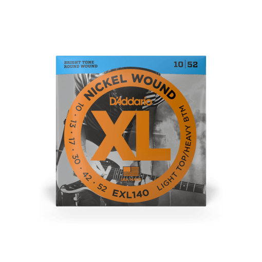 EXL140 is a hybrid gauge set that combines EXL110 for flexibility with heavier 4th, 5th and 6th strings for a more solid low end.